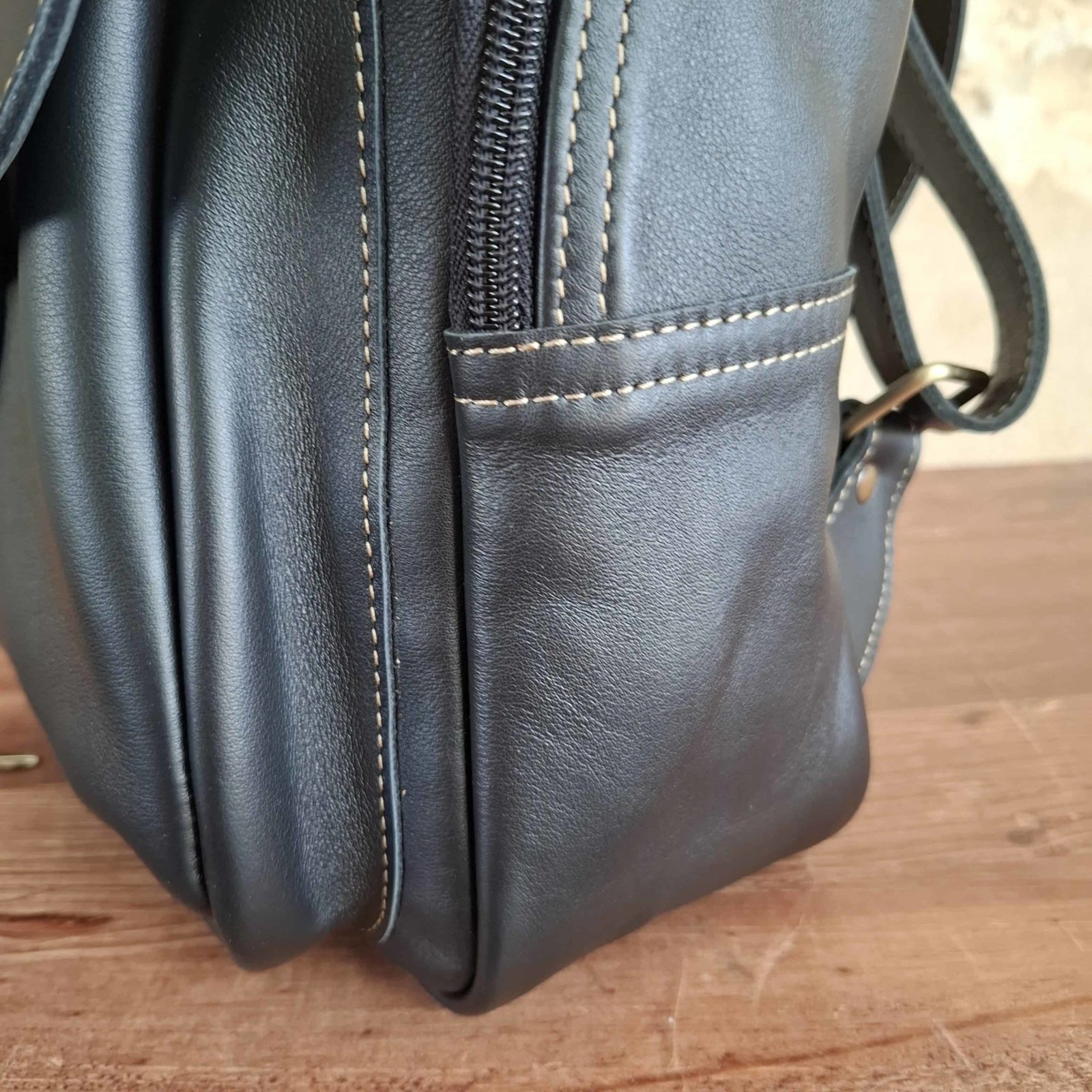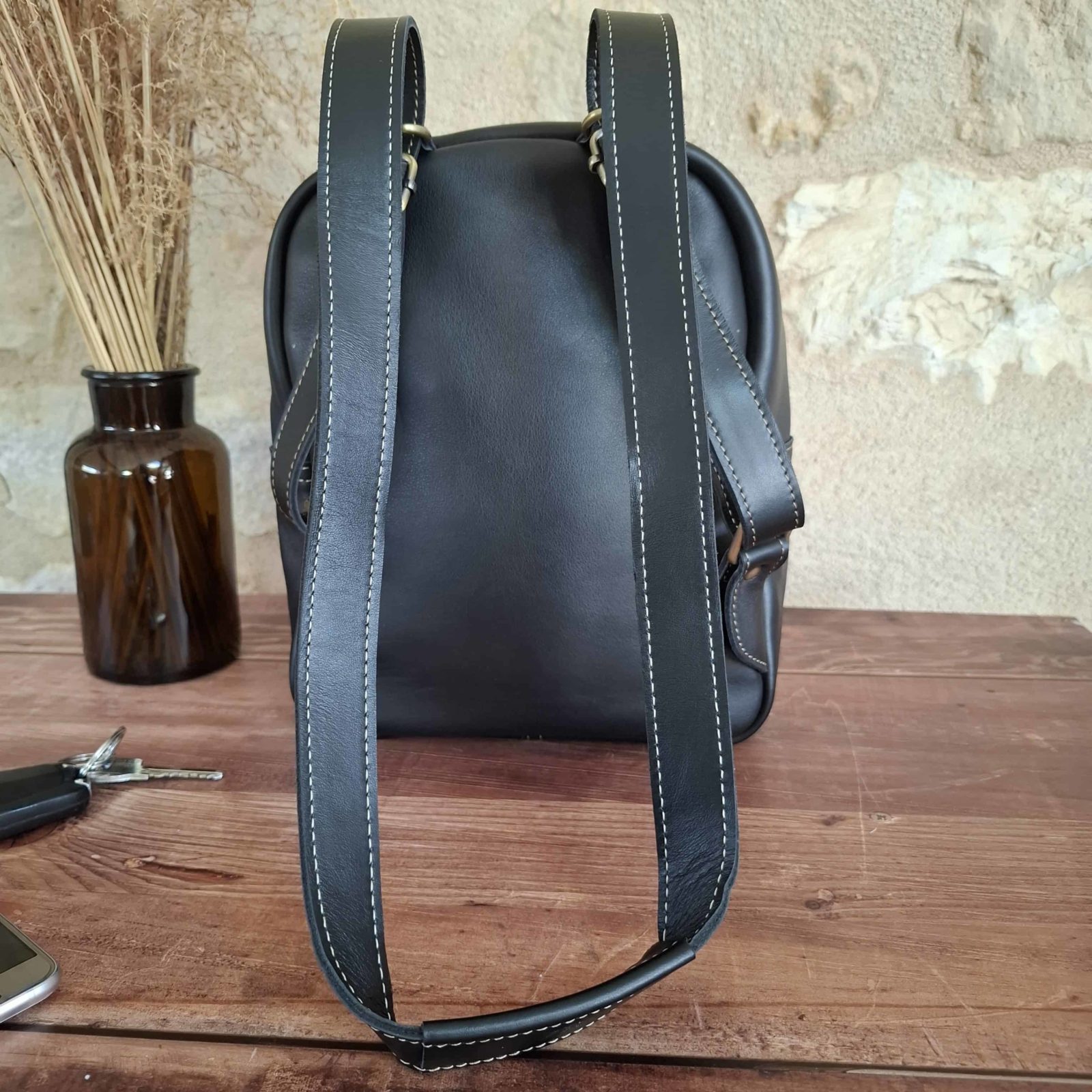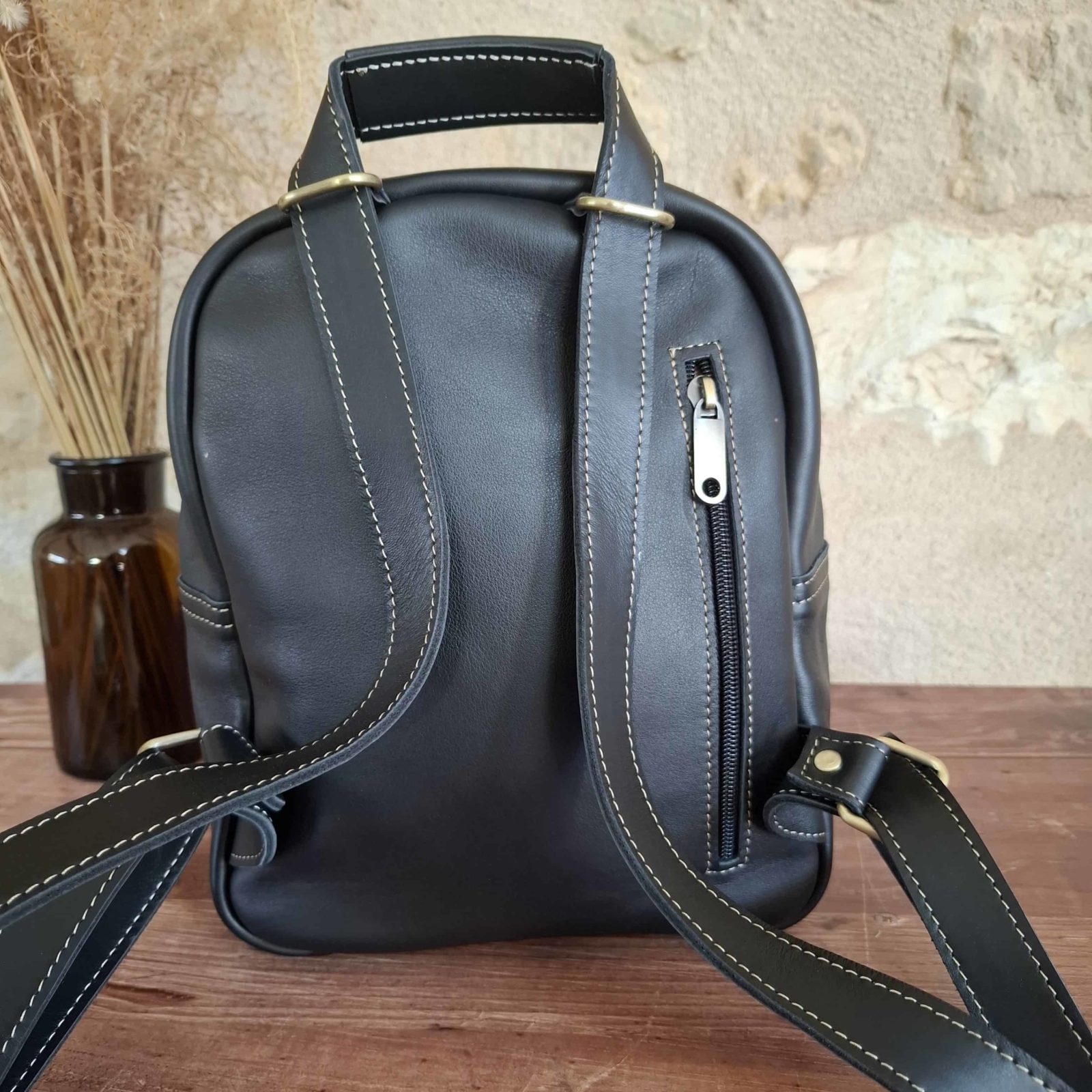Ce petit sac à dos en cuir noir est l’allié idéal pour celles et ceux qui aiment bouger sans s’encombrer. Ni trop grand, ni trop petit, il accueille vos essentiels du quotidien : téléphone, clés, petite bouteille, carnet… tout reste bien à sa place, à portée de main. Son cuir souple lui donne un charme naturel, facile à associer avec toutes les tenues.